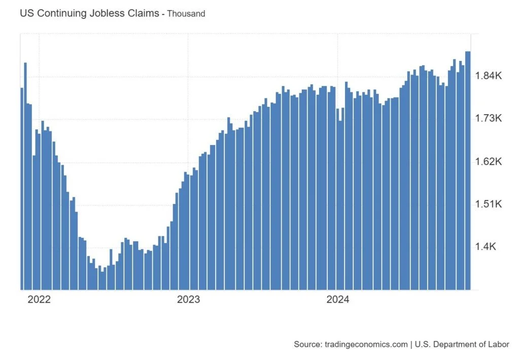 Continuing US jobless claims have continued to increase in recent weeks showcasing a āsofteningā job market, not a ābreakingā job market.
